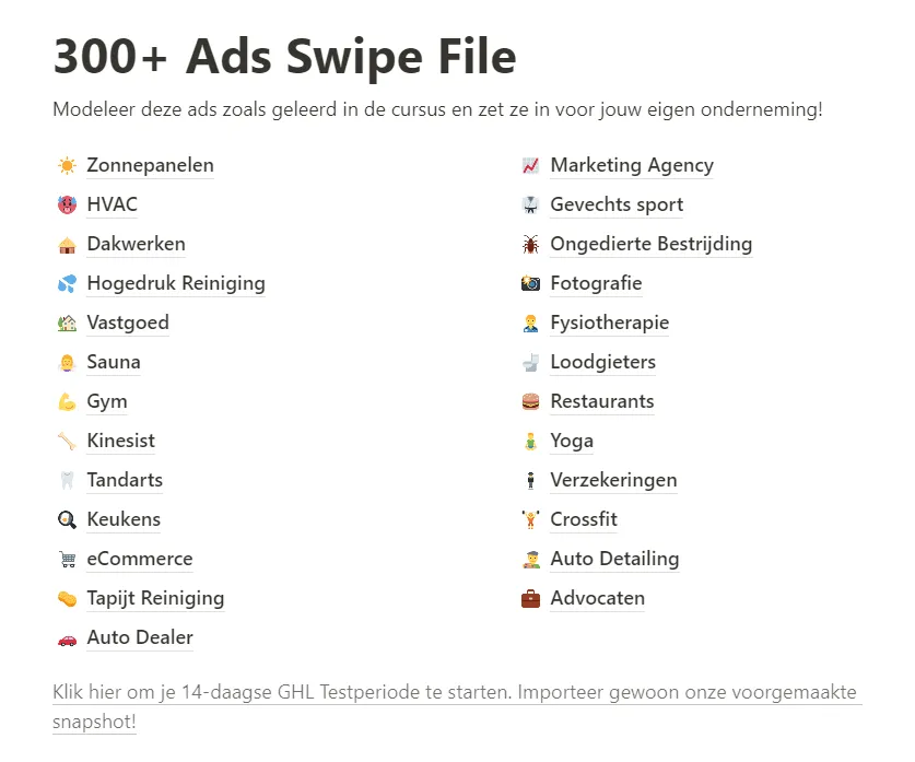 300+ Voorbeelden van winnende, bewezen advertenties van andere KMO's.